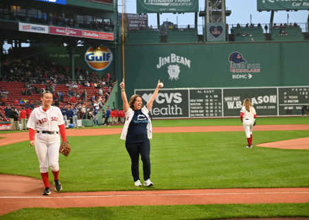 JetBlue Foundation President Ursula Hurley threw out the first pitch at the Red Sox game at Fenway Park